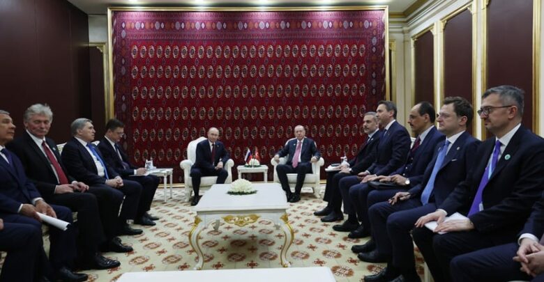 وذكرت وسائل إعلام روسية، بينها وكالة “آر تي”، أن هذه المحادثات جرت على هامش منتدى “السلام والثقة” الدولي المنعقد في العاصمة التركمانستانية عشق آباد، والذي شارك فيه الرئيسان إلى جانب قادة عدد من الدول الأخرى.